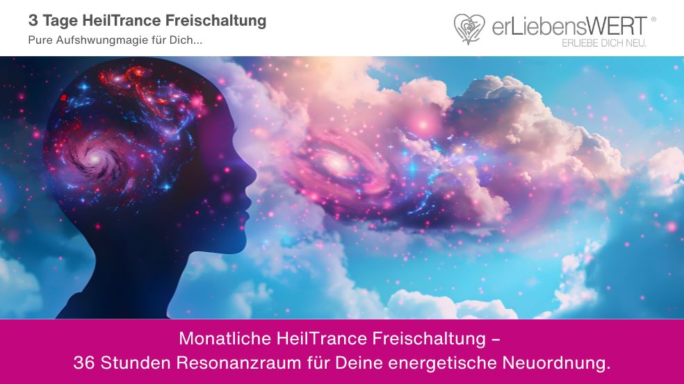36 Stunden HeilTrance Freischaltung – erLiebensWERT® Glücksalben Einmal im Monat öffnet sich für 36 Stunden ein besonderer Resonanzraum. Eine HeilTrance aus den erLiebensWERT® Glücksalben wird freigeschaltet und lädt Dich ein, Deine Energie neu auszurichten, Dein Herzfeld zu klären und Deinen inneren Aufschwung zu aktivieren. Empfangen – Ausrichten – Aufschwingen Diese Trancen sind Teil der ORTHOmantie® […]